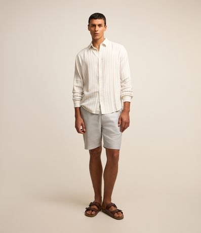 Ref: Bermuda com bolsos, confeccionada em material mais sustentável, modelo reto, cós com passante e textura.