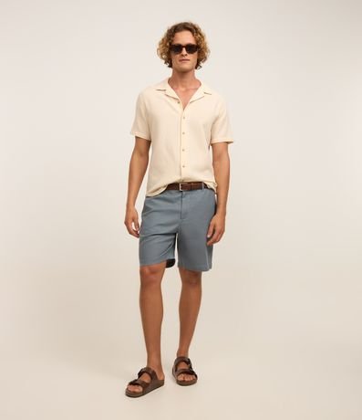 Ref: Bermuda com bolsos, confeccionada em material mais sustentável, modelo reto, cós com passante e textura.