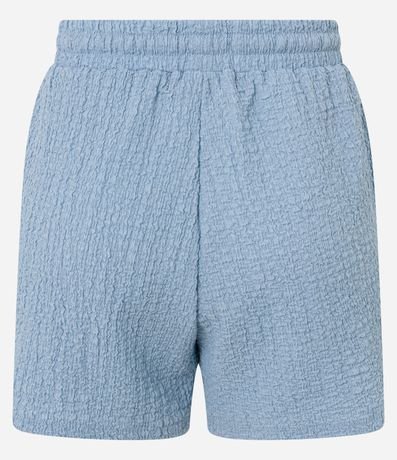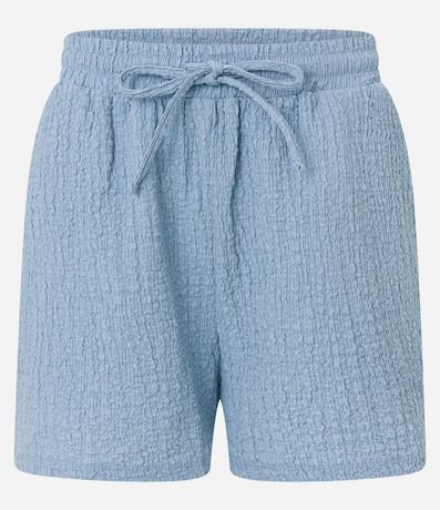 Ref: Bermuda feminina confeccionada em chambray, no modelo reto. Possui cós elástico, com amarração e texturizada.