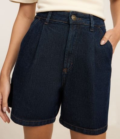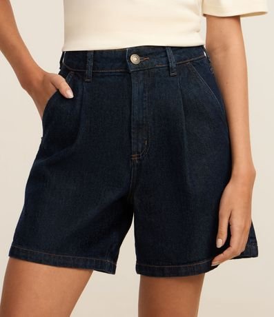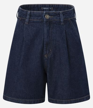 Bermuda Reta em Jeans com Pregas e Bolsos