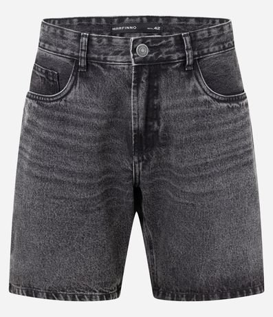 Ref: Bermuda masculina confeccionada em jeans mais sustentável com boas práticas ambientais. Peça no modelo reta com cós fixo, passantes, fechamento tradicional e bolsos.