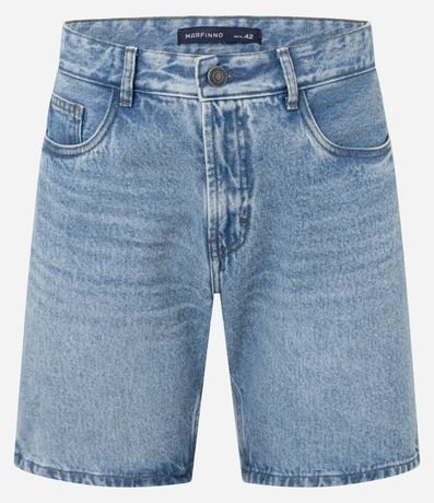 Ref: Bermuda masculina em jeans, confeccionada em jeans mais sustentável com boas práticas ambientais, peça no modelo reta, cós com passante, etiqueta aplicada, fechamento tradicional e bolsos.