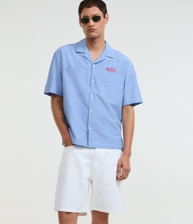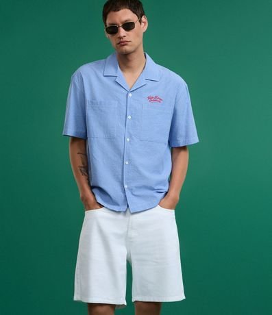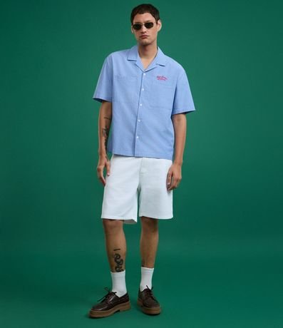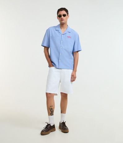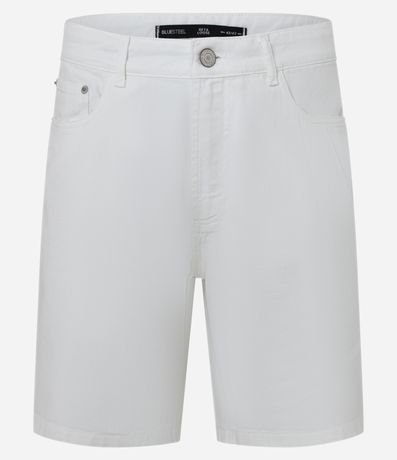 Ref: Bermuda masculina no modelo reta, Confeccionado em sarja de algodão certificado bci com boas práticas ambientais, sem estampa, peça versátil com bolsos.