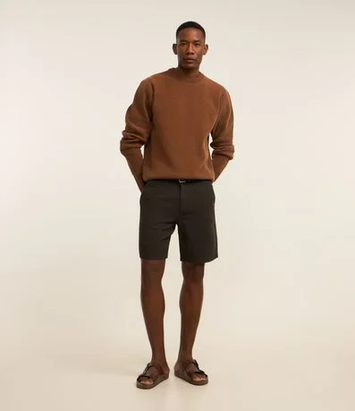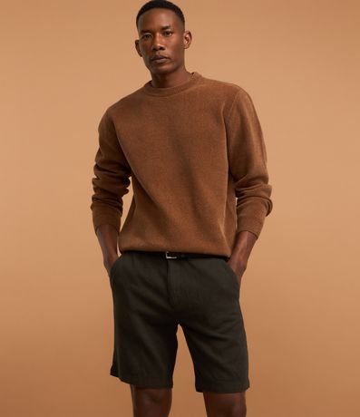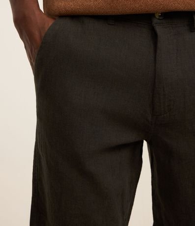 Bermuda masculina confeccionada em linho mais sustentável no modelo reto, possui cós com passante, fechamento tradicional e bolsos.