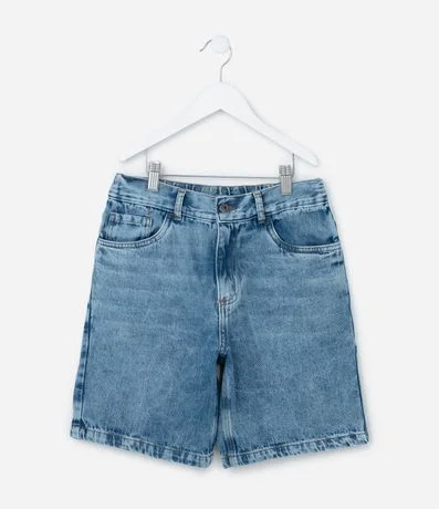 Bermuda Reta Infantil em Jeans com Cós Elástico - Tam 5 a 14 anos