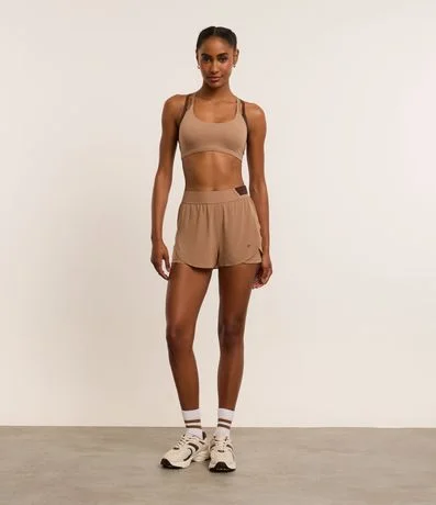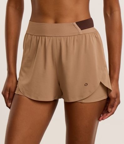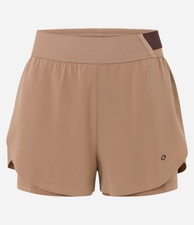 Bermuda esportiva com short justinho interior. A peça tem cós elástico e bolsos funcionais - nas costas com zíper e lateral no short interior.