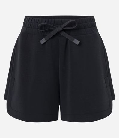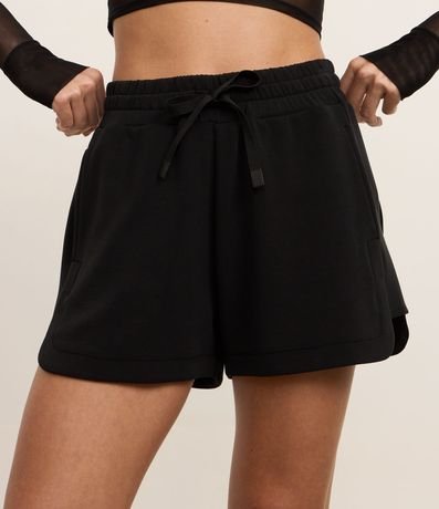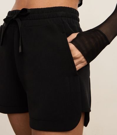 Bermuda feminina esportiva de modelo runner, com bolsinhos amarração na cintura e recorte na lateral.