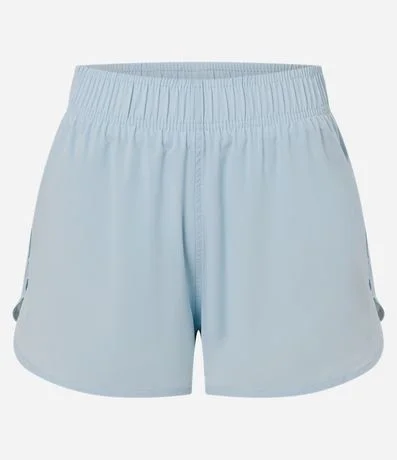 O short runner esportivo tem o gancho mais deslocado, com elástico na cintura e a barra arredondada. Tem a modelagem mais soltinha e é ótimo para praticar exercícios.