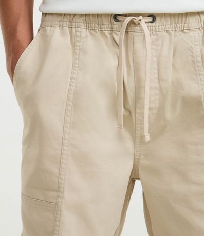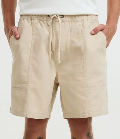 Ref: Bermuda masculina confeccionada em sarja mais sustentável através de boas práticas ambientais, no modelo shorts. Possui cós elástico, cordão ajustável e recortes.