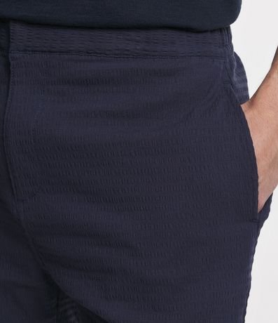 Bermuda slim masculina, confeccionada em algodão com cós elástico e bolsos. O tecido texturizado, além de proporcionar um toque nobre a peça, agrega muita elegância ao seu visual.