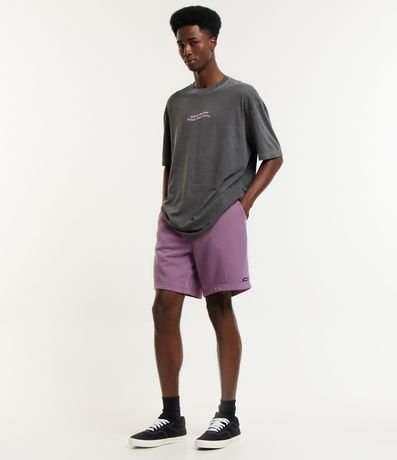 Ref: Bermuda slim masculina, confeccionada em tecido moletom, com cós elástico, cordão para ajuste, bolsos, etiqueta aplicada na barra e sem estampa.