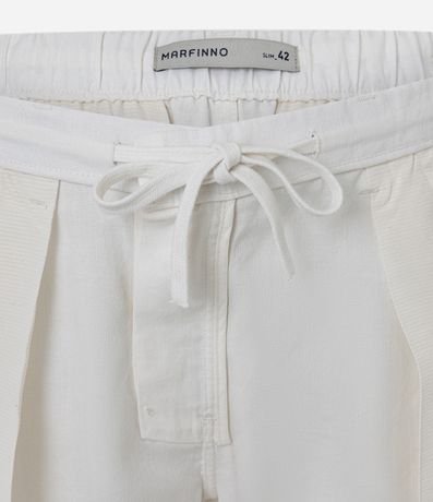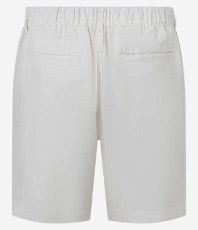 Bermuda masculina confeccionada em oxford mais sustentável, possui cós com elástico traseiro e cordão frontal ajustável interno, passantes, fechamento tradicional e bolsos traseiros.