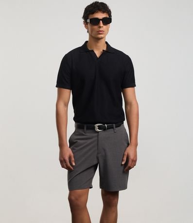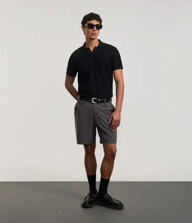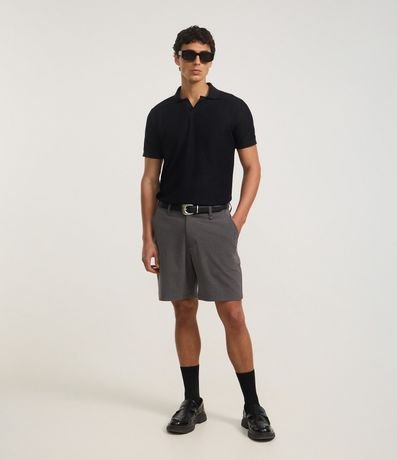 Bermuda masculina confeccionada em sarja mais sustentável através de boas práticas ambientais, no modelo slim. Peça alfaiatada, cós com passante, fechamento tradicional e bolsos.