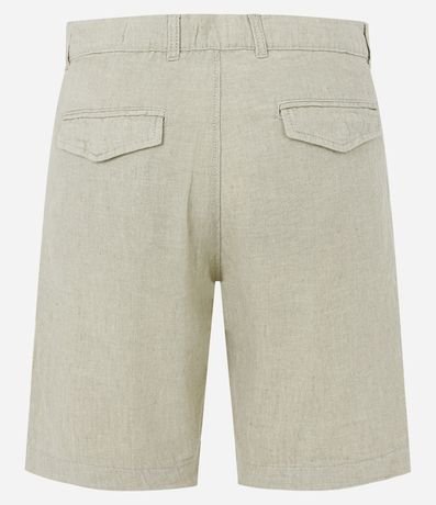 Ref: Bermuda masculina de modelo slim, confeccionada em tecido de linho com algodão mais sustentável com boas práticas ambientais e sem estampa. Possui cós fixo com passantes, bolsos traseiros e fechamento frontal tradicional com botão e zíper.