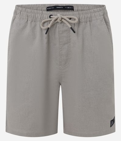 Ref: Bermuda masculina confeccionada em algodão mais sustentável. A peça tem possui bolsos, superfície texturizada, cós elástico com cordão e etiqueta aplicada na lateral.