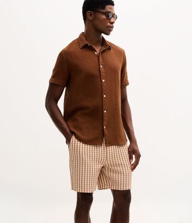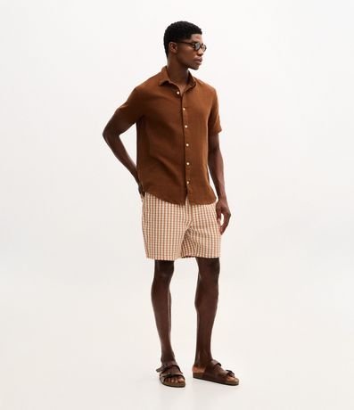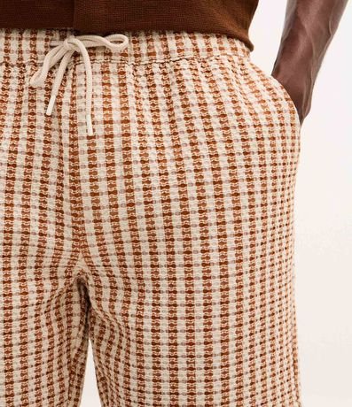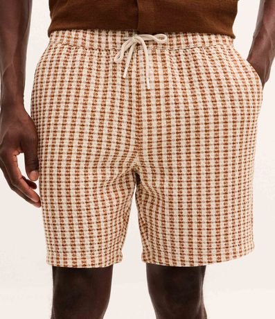 Bermuda masculina, confeccionada em algodão mais sustentável, com cós elástico e cordão para ajuste. Peça tem textura em xadrez.