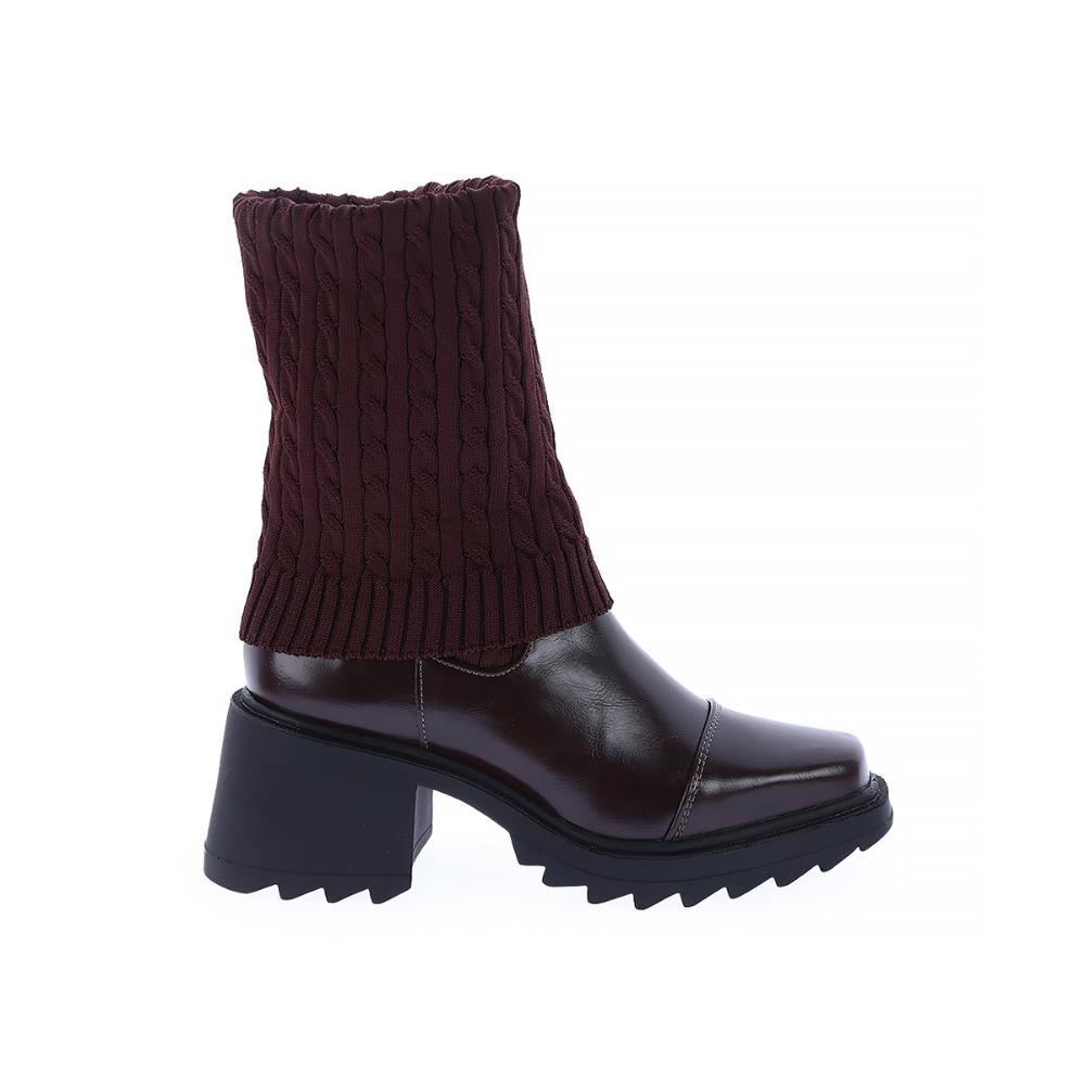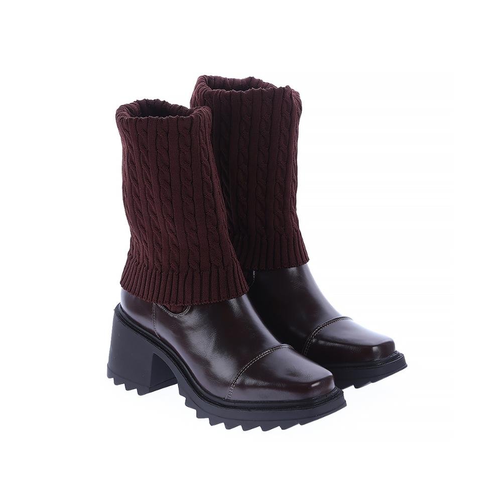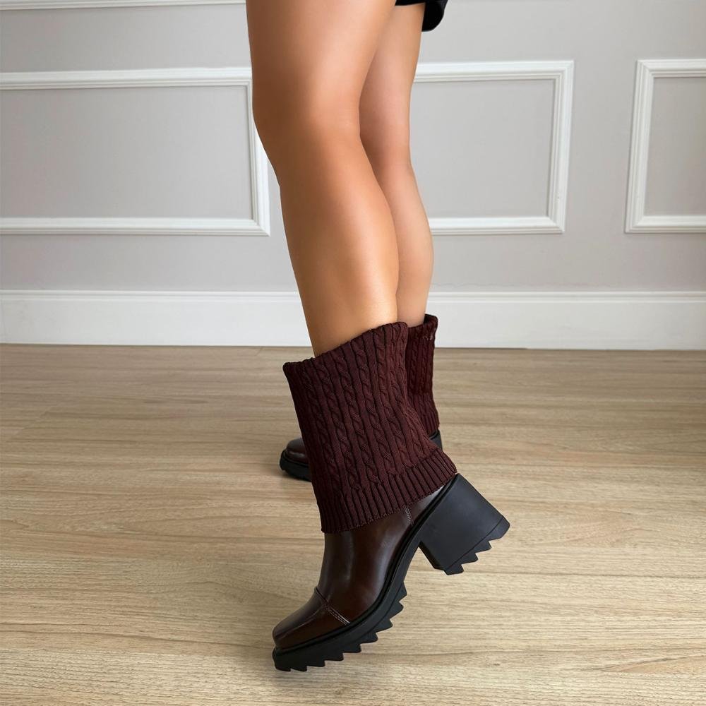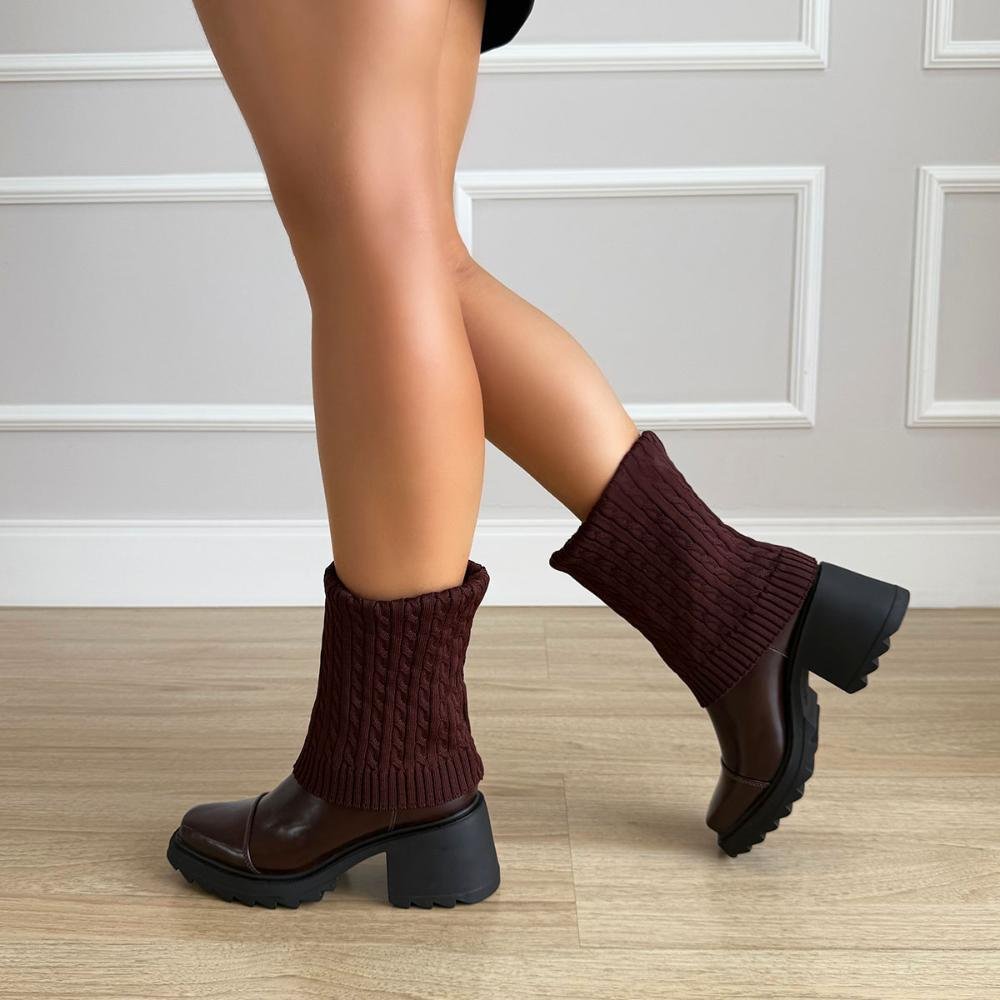 O cabedal em tom marrom elegante combinado com o cano em tricô cria um visual sofisticado e versátil, ideal para compor looks com vestidos, saias, jeans ou leggings. O salto tratorado garante mais estabilidade e personalidade ao visual, além de proporcionar conforto para o uso no dia a dia.