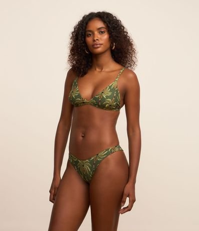 Ref: Peça avulsa de biquíni feminino, modelo asa delta, com fio duplo e estampa tropical de coqueiros. Possui acabamento traseiro em fio duplo.
