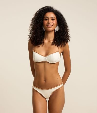 Ref: Biquíni calcinha asa delta feminina, confeccionada em poliamida, com viés metalizado contrastante.