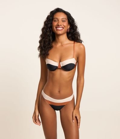 Ref: Peça avulsa de biquíni feminino, modelo calcinha básica, confeccionada em microfibra leve, com laterais estreitas e parte frontal com blocos de cor.