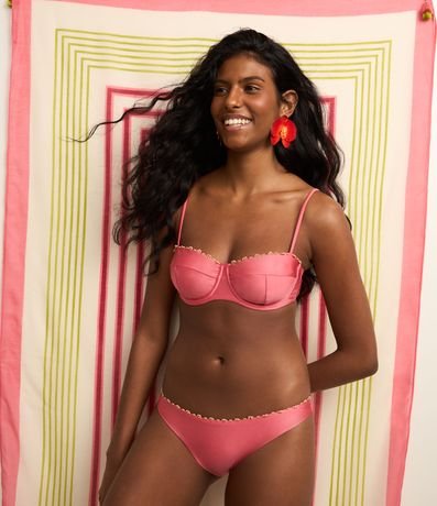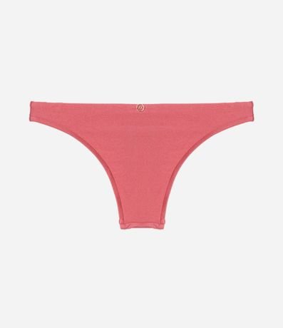 Biquíni calcinha confeccionado em microfibra sem estampa e com efeito levemente brilhante. A peça é básica e tem detalhe de pequenos aviamentos de madeira no cós.
