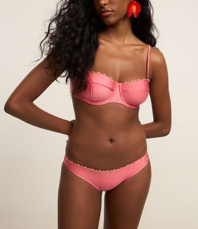 Biquíni Calcinha Básica em Microfibra Brilho com Mini Aviamentos de Madeira