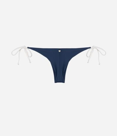 Biquini calcinha feminina confeccionada em microfibra e lisa. Modelo de lacinho com amarrações laterais que permitem ajuste personalizado. Possui viés contrastante nas bordas e detalhe metálico discreto na parte posterior.