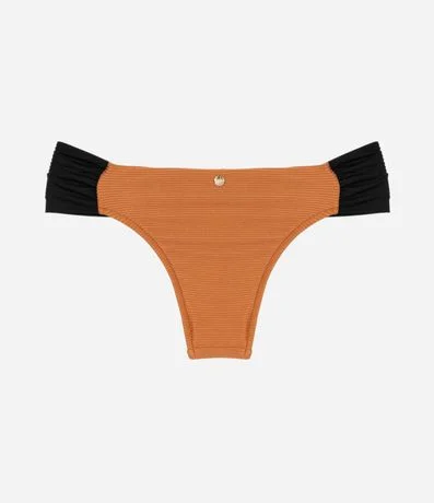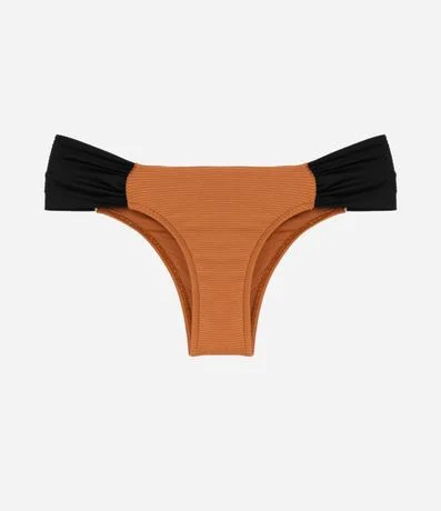 Biquini calcinha feminino confeccionado em microfibra. Possui modelo com a lateral drapeada, texturizado e com viés contrastantes.