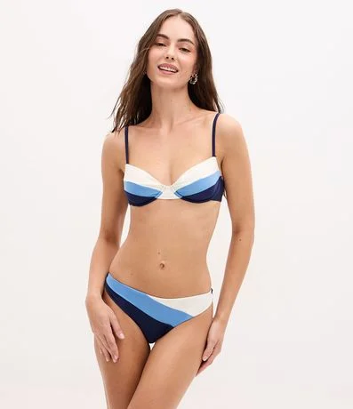 Biquini calcinha feminino confeccionado em microfibra. Possui modelo empina bumbum básico com recortes colorblocking.