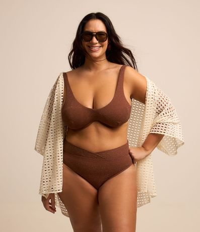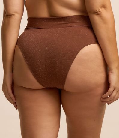 Biquíni bottom plus size, confeccionado em malha de poliamida com fio metalizado. Calcinha de biquíni modelo hot pants e com cós transpassado.