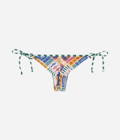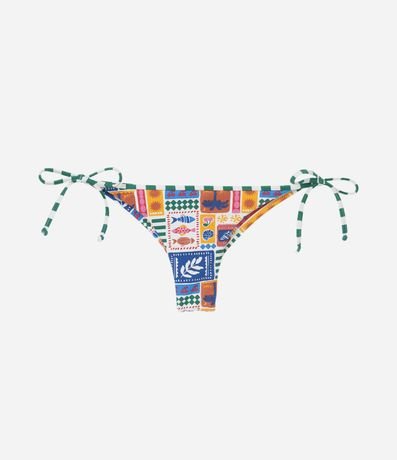 Ref: Peça avulsa de biquíni confeccionada em microfibra. A calcinha tem cordinhas laterais para amarração, fio duplo para efeito empina bumbum e estampa tropical com listras.