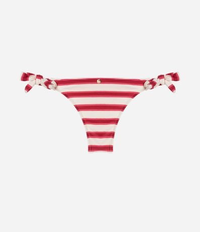 Peça avulsa de biquíni confeccionada em microfibra listrada. A calcinha tem amarração lateral grossa.