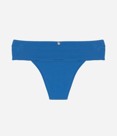 Peça avulsa de biquíni confeccionada em microfibra canelada e sem estampa. A calcinha tem laterais largas e aviamento metálico em forma de flor.