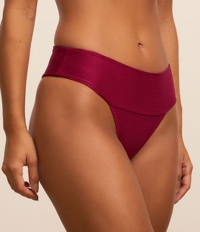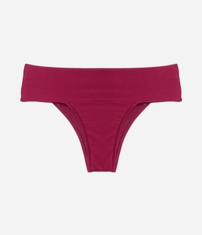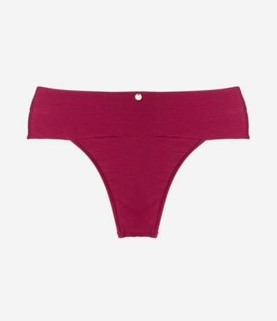Ref: Biquíni bottom modelo pala larga. A peça tem superfície canelada e sem estampa. Detalhe de medalhinha nas costas.