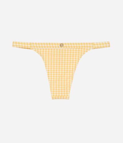 Peça avulsa de biquíni confeccionada em microfibra estampada vichy. A calcinha modelo string tem laterais estreitas e fixas (sem regulagem).