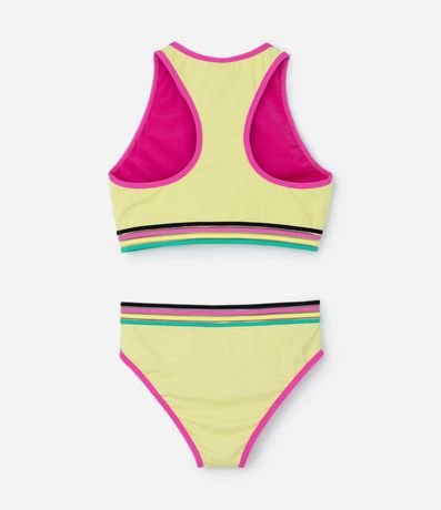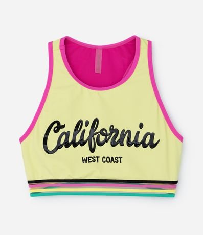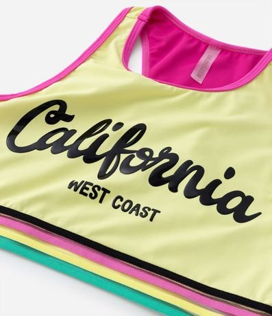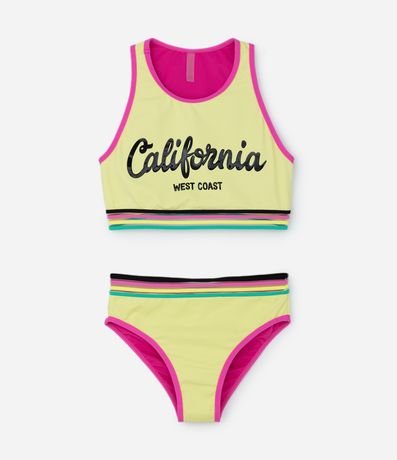 Ref: Conjunto de biquíni infantil composto por 02 peças: top e calcinha, confeccionados em microfibra leve e com proteção UV. Possui estampa lettering Califórnia.