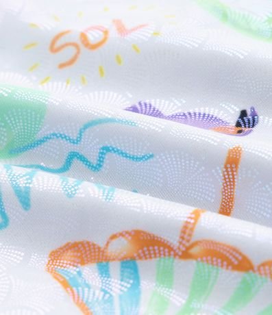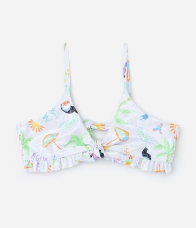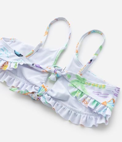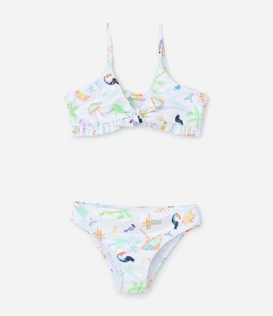 Ref: Biquíni infantil com duas peças, top e calcinha. Ambas as peças possuem estampa ícones de praia e confeccionados em microfibra com proteção UV.