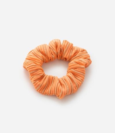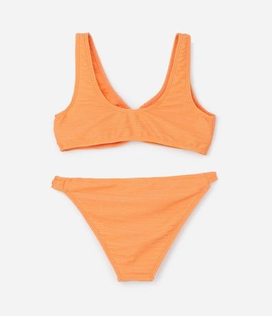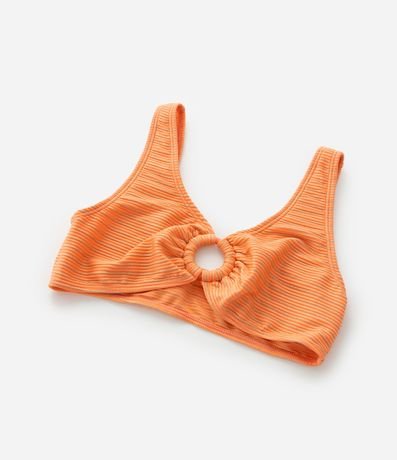 Biquíni infantil com duas peças, top e calcinha. Ambas as peças possuem textura, fio metalizado, argola no top, confeccionados em microfibra com proteção UV. Acompanha scrunchie.