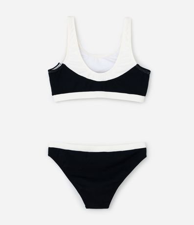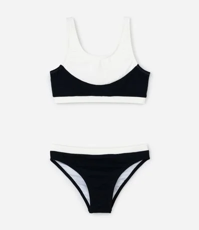 Ref: Biquíni infantil confeccionado em microfibra leve, composto por duas peças: top com alças e calcinha com laterais largas. Modelo bicolor com textura, ideal para conforto e diversão nos dias de calor.