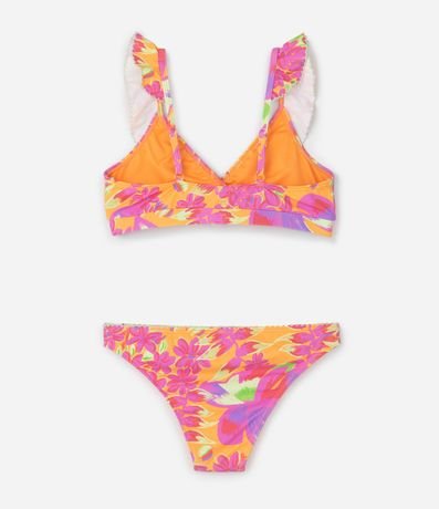 Ref: Biquíni infantil confeccionado em microfibra leve de poliamida com elastano, oferecendo secagem rápida e conforto. O top possui decote em V, alças com babados e acabamento delicado. O bottom tem modelagem clássica e forro interno, garantindo ajuste seguro para praia e piscina.