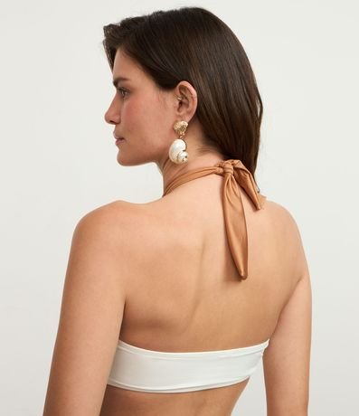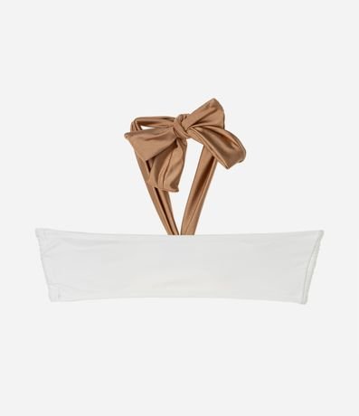 Ref: Peça avulsa de biquíni confeccionada em microfibra sem estampa. O top modelo bandeau tem bojos removíveis e amarração no pescoço em tecido contrastante e efeito brilho.