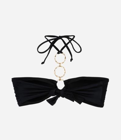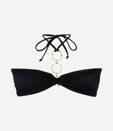 Ref: Peça de biquíni avulsa confeccionada em microfibra sem estampa. O top bandeau tem três argolas metalizadas, amarração fina no pescoço e fechamento por amarração nas costas. Os bojos são removíveis.