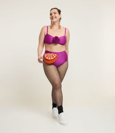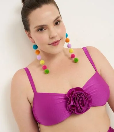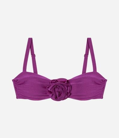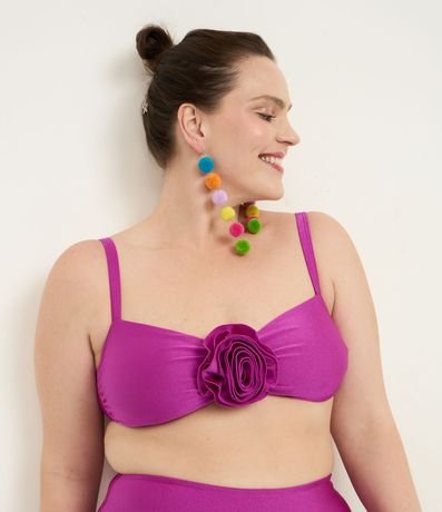 Biquíni Top Brilhoso em Microfibra com Flor Frontal Curve & Plus Size