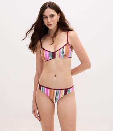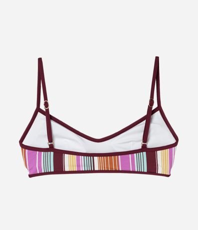 Biquíni top feminino confeccionado em microfibra com estampa listrada. Modelo estilo camisetinha, bojo removível e alças finas reguláveis para melhor ajuste, acabamento em viés que reforça a estrutura e garante conforto para compor looks de praia modernos.