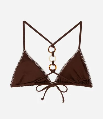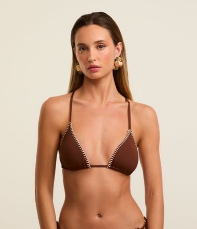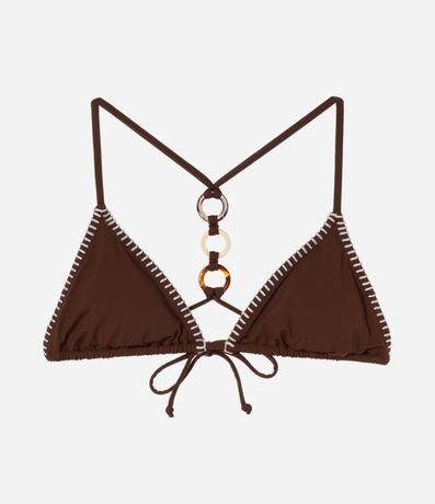 Biquíni Top Cortininha com Argolas nas Costas e Pespontos Contrastantes