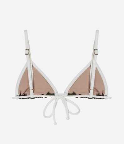 Biquíni top confeccionado em crepe com acabamento em viés contrastante, no modelo cortininha. Possui alças paralelas reguláveis e amarração inferior para melhor ajuste. Confortável, forrado e com bojo removível. Ideal para compor looks modernos de praia.