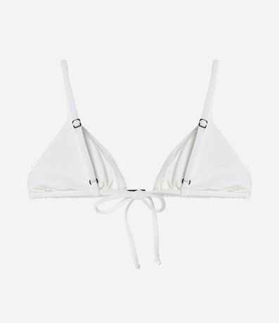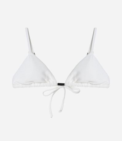 Ref: Biquíni top confeccionado em microfibra canelada e sem estampa. A peça modelo cortininha tem bojos removíveis, alças paralelas ajustáveis e aviamento metalizado no centro.