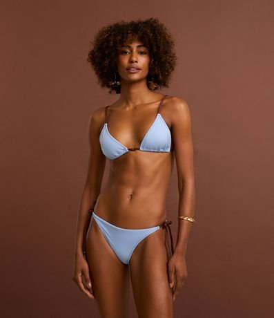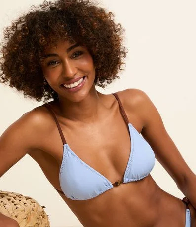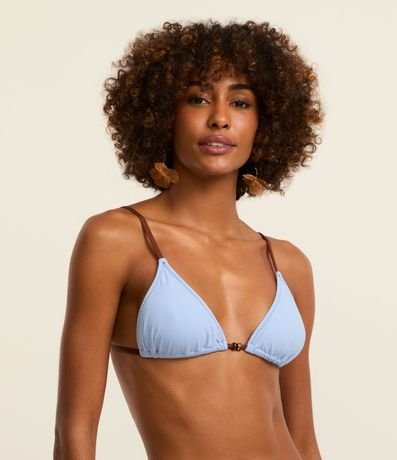 Ref: Peça avulsa de biquíni confeccionada em microfibra sem estampa. O top modelo cortininha tem alças reguláveis e contrastantes, bojos removíveis e aviamentos de madeira no busto.