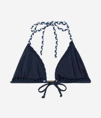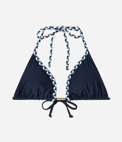 Ref: Biquini top, cortininha, confeccionado em microfibra, com detalhe trançado bicolor e aviamento no busto.