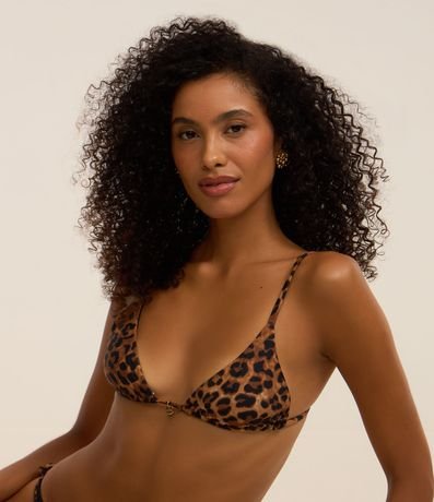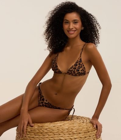 Ref: Biquíni top feminino cortininha confeccionado em microfibra. Peça com estampa animal print e amarração nas costas.